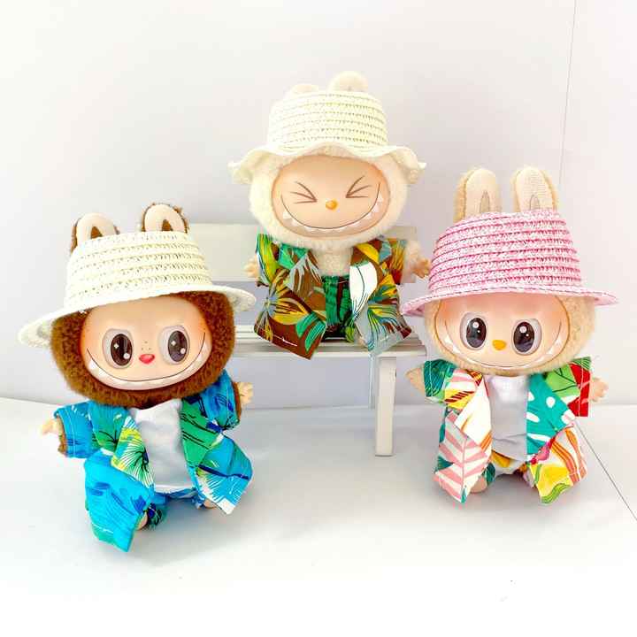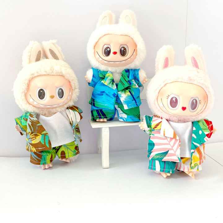 First Second and Third Generations 17 Centimeter Labubu Clothes for Beachwear on the Hawaiian Coast Beach Shorts Kids Clothes
