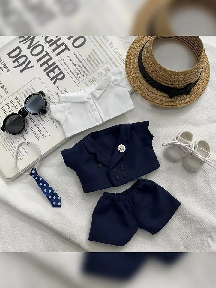 Bring timeless elegance to your Labubu with this [British Gentle Look] outfit. Designed with refined navy tones, double-breasted tailoring, a dotted tie, and a daisy pin, this outfit blends charm and sophistication ā perfect for photoshoots or special gift sets.